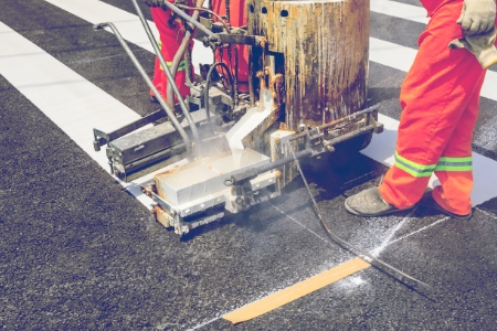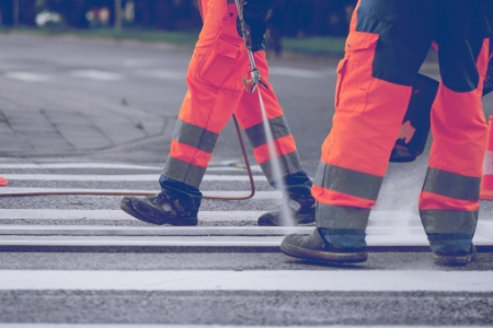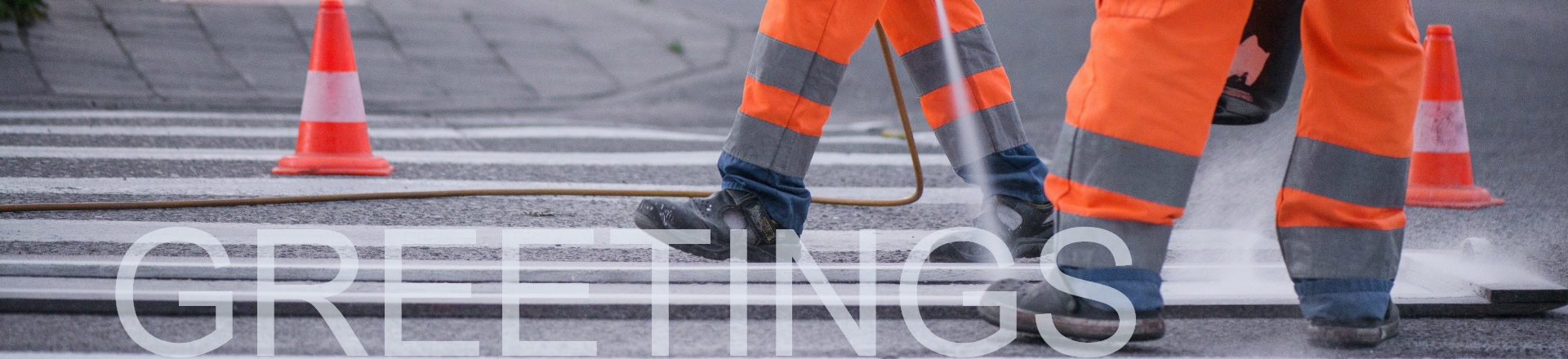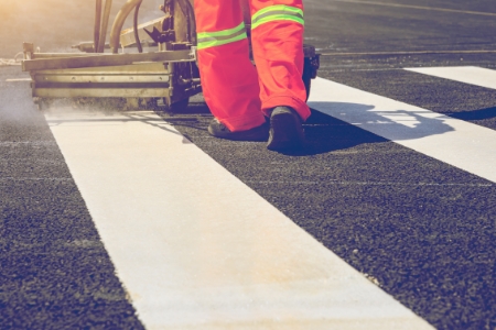 当社は福井県内で駐車場のライン引き、道路区分、路面表示からアスファルト塗装も含めた車止め、自発光表示機設置などを行っています。
